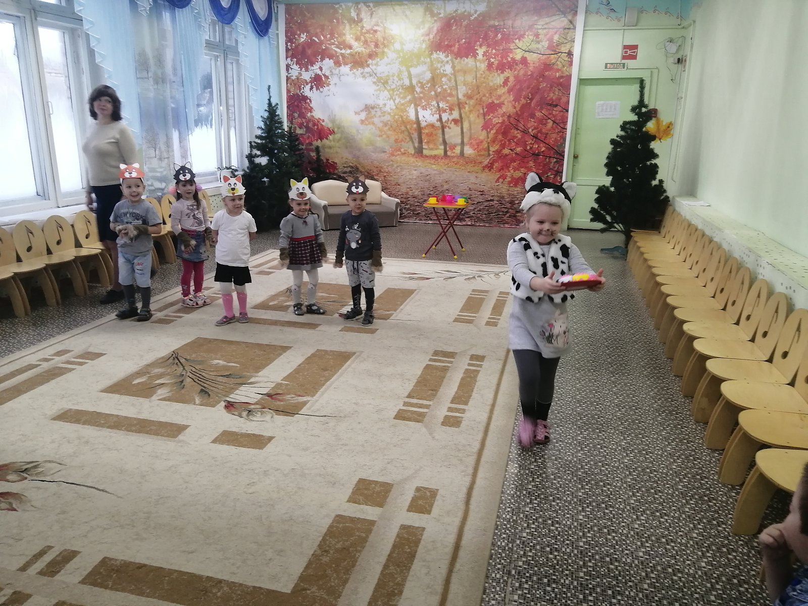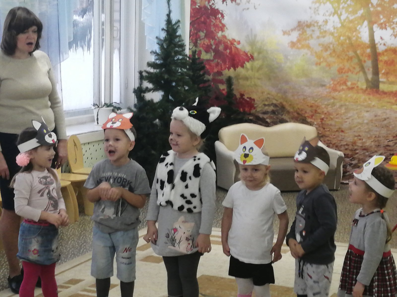 Еще одно театральное творение «Перчатки» С.Маршака на прошедшей неделе подарили нам ребята младшей группы (воспитатель Сопнева Н.В.). Маленькие котятки Василиса, Арина, Женя, Семен и Лиза не слушались маму, которую исполнила Жигулева Софья, шалили и потеряли перчатки. Мама очень расстроилась. Но все закончилось хорошо, и котята нашли перчатки. А мама их за это накормила пирогом. И даже устроила веселье, которое вместе с ними разделили юные зрители – ребята из соседней группы.