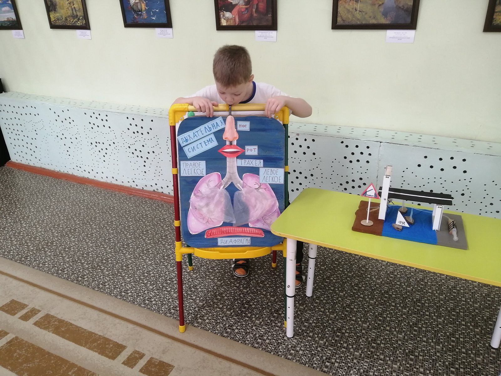 Максимов Федя представил целых две работы, которые создал вместе со своими мамой и папой: «Макет дыхательной системы человека» и «Модель подъемного моста через Оку».